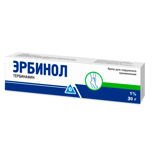 Тербинафин, активное вещество препарата Эрбинол, представляет собой аллиламин, который обладает широким спектром противогрибковой активности. В низких концентрациях тербинафин оказывает фунгицидное действие в отношении дерматофитов, плесневых и некоторых диморфных грибов. Активность в отношении дрожжевых грибов, в зависимости от их вида, может быть фунгицидной или фунгистатической.